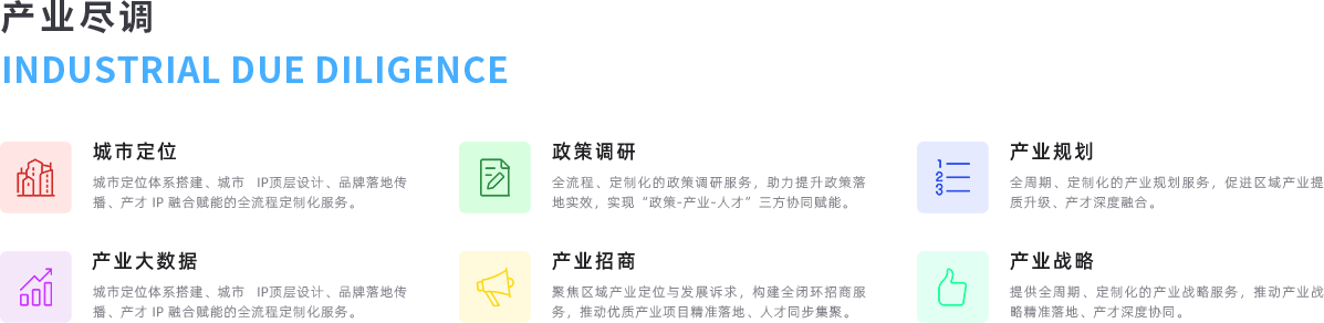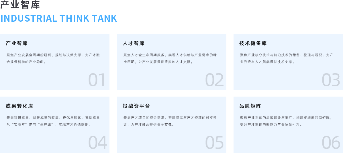 聚焦产业发展规律和产才融合生态构建,依托数字化产业智库、AI 数据分析能力,聚焦产业发展的前瞻性、系统性、适配性,为政府部门、产业企业、投资机构等主体提供定制化的产业研究、城市定位、规划设计、体系搭建等专业服务,精准破解产业发展与人才集聚的协同难题,为产业科学布局、生态升级、产才双向赋能提供专业的研究支撑与落地型解决方案。