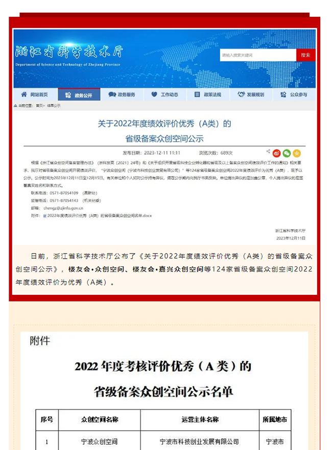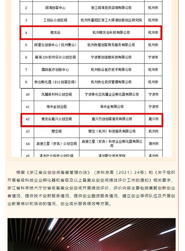 楼友会众创空间获省级备案众创空间2022年度绩效评价优秀(A类)