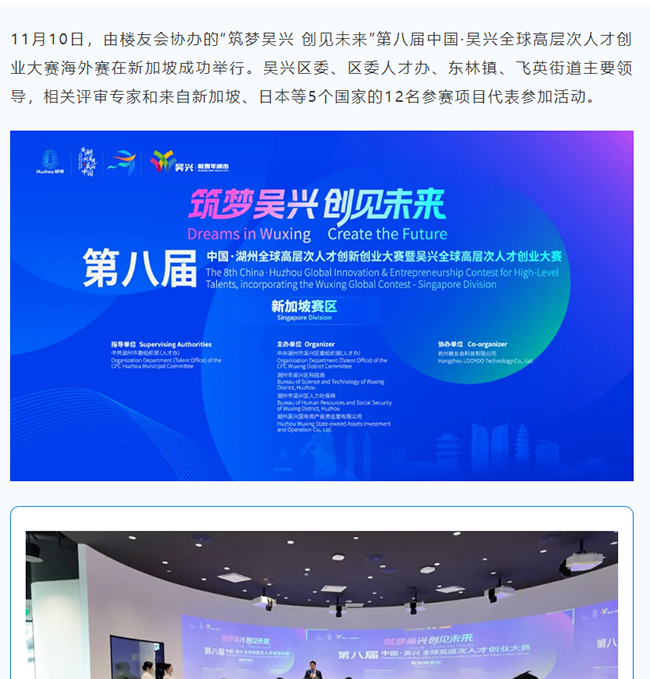 筑梦吴兴 创见未来 | 楼友会协办第八届中国·吴兴全球高层次人才创业大赛海外赛在新加坡成功举行