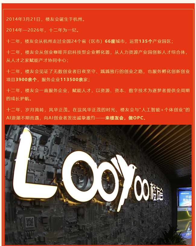 楼友会之纪」LOOYOO“链上”OPC,携手开启AI创业新时代