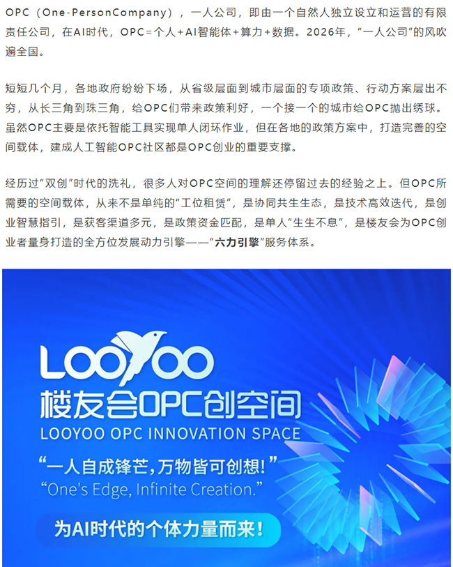 “六力引擎”破解OPC创业痛点,楼友会为AI时代的个体力量而来!